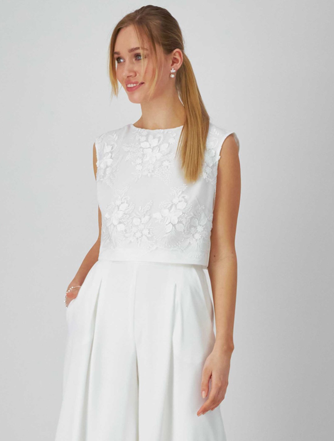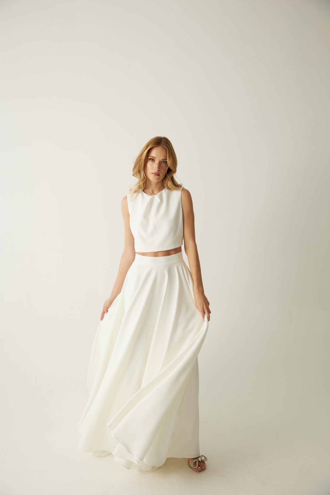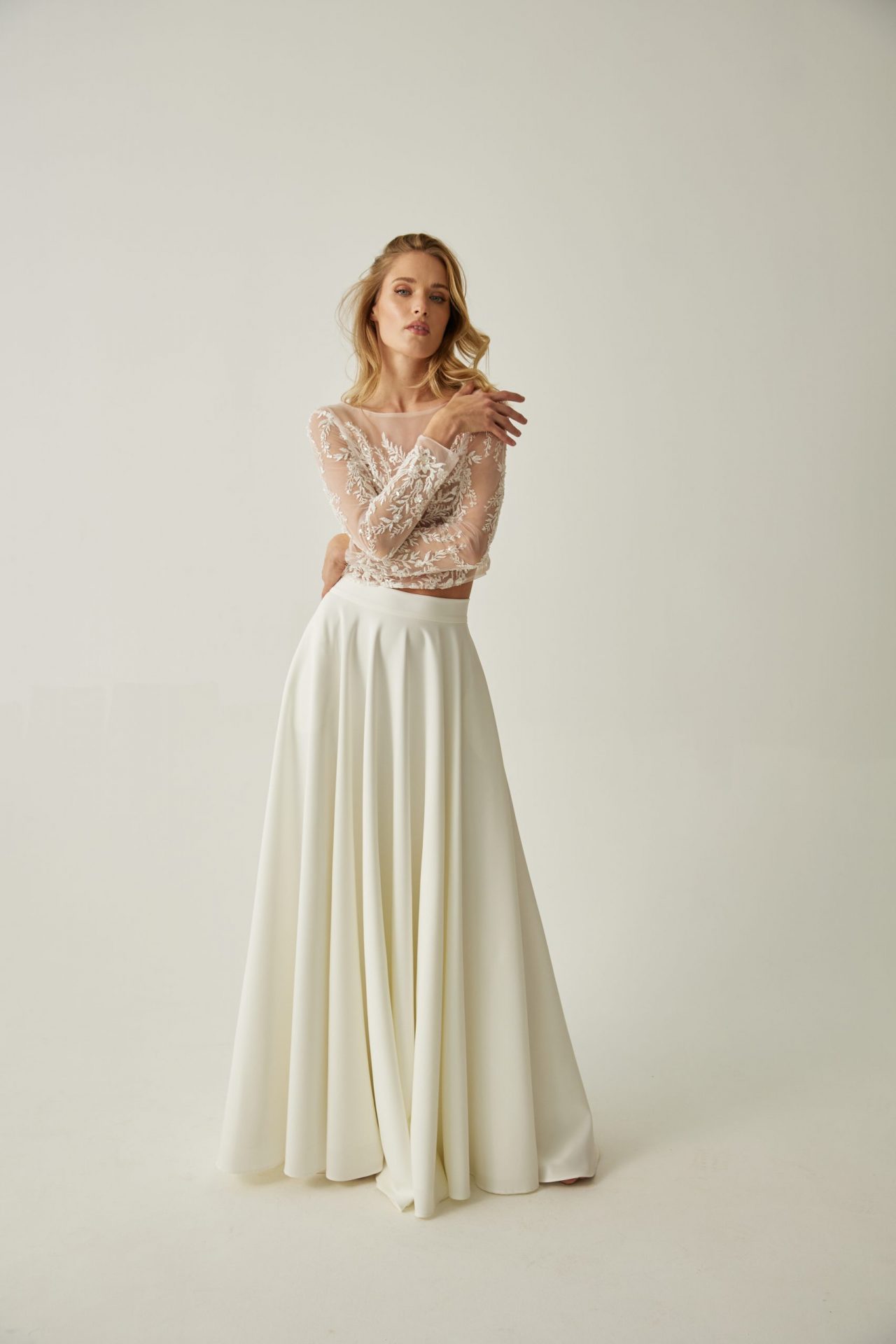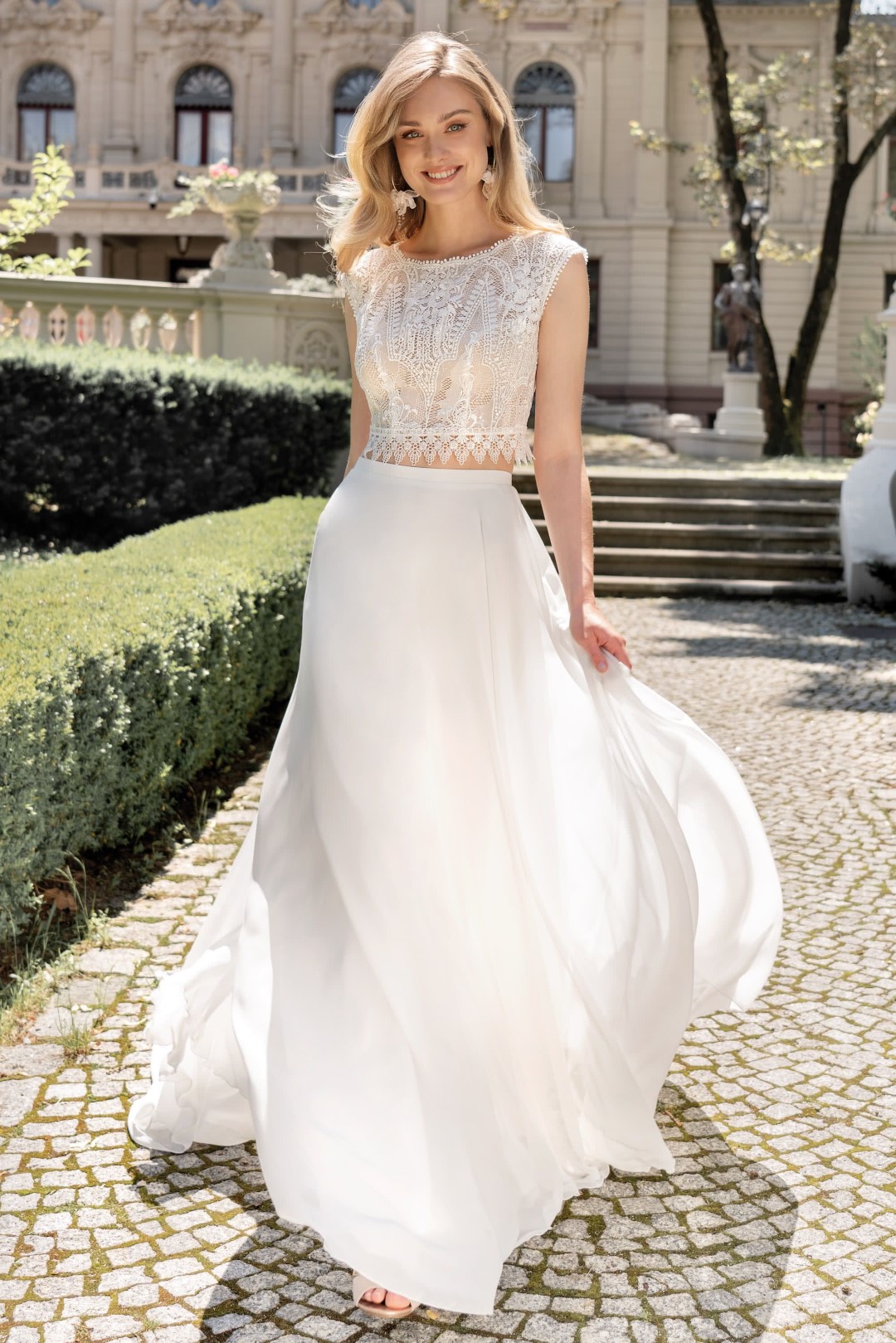 Zweiteiler erfreuen sich zunehmender Beliebtheit als moderne Alternative zum traditionellen Standesamtkleid. Sie bieten eine faszinierende Mischung aus Eleganz und Vielseitigkeit, die es Dir ermöglicht, Top und Rock oder Hose nach Deinem Geschmack zu kombinieren. Ob ein schickes Seidentop mit einer maßgeschneiderten Hose oder ein zartes Spitzenoberteil mit einem fließenden Rock – Zweiteiler erlauben es Dir, Deine Individualität auf elegante Weise auszudrücken.