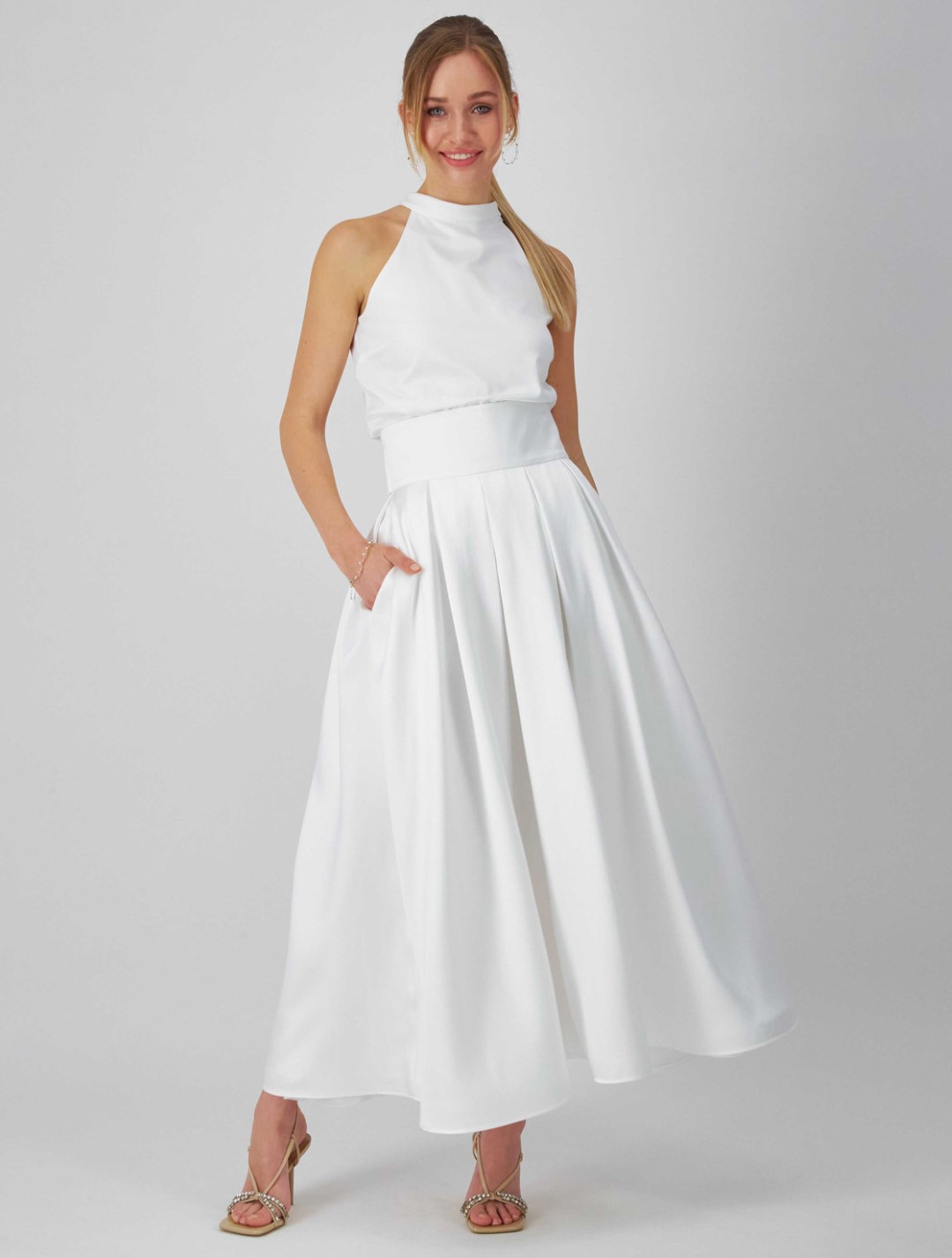 Für werdende Mütter haben wir eine spezielle Auswahl an Umstandsmode für das Standesamt, die Komfort und Stil perfekt vereint. Unsere Kleider und Jumpsuits sind speziell so entworfen, dass sie den wachsenden Babybauch mit flexiblen Stoffen und schmeichelhaften Schnitten umschmeicheln, sodass Du Dich an Deinem großen Tag rundum wohl und wunderschön fühlst.