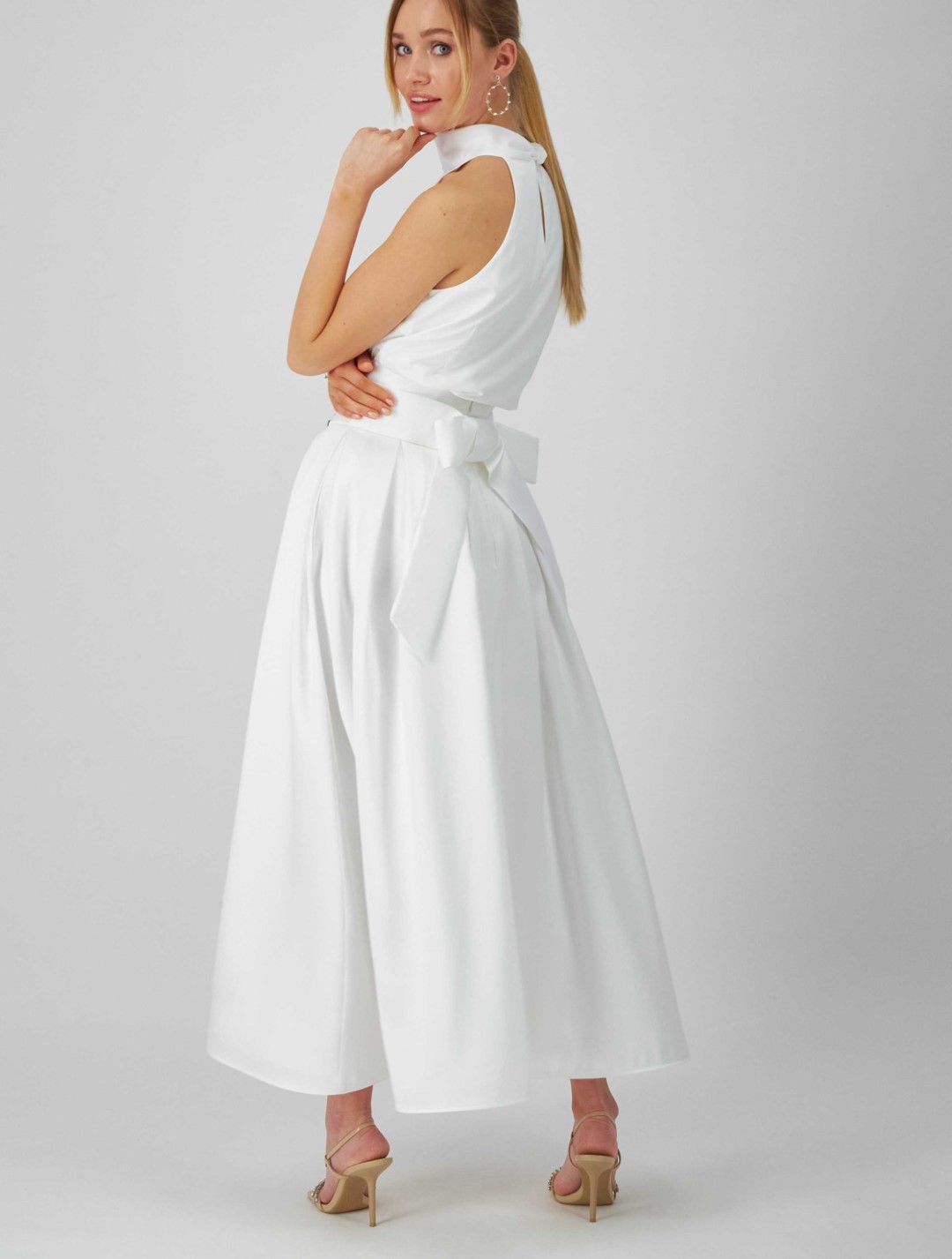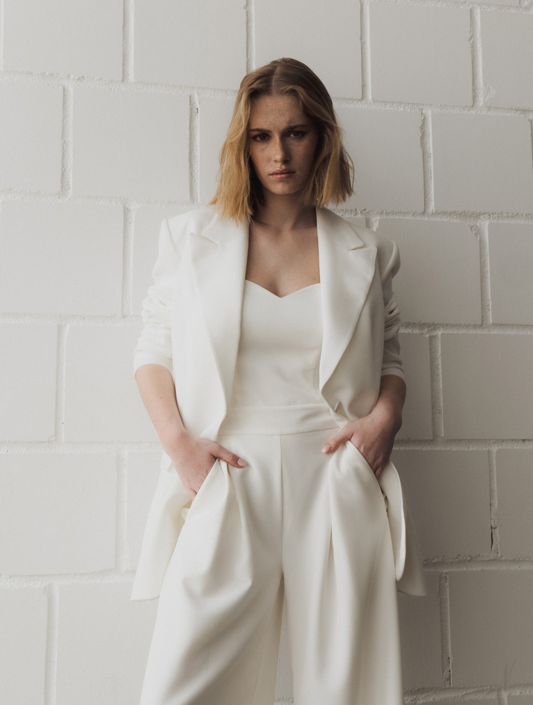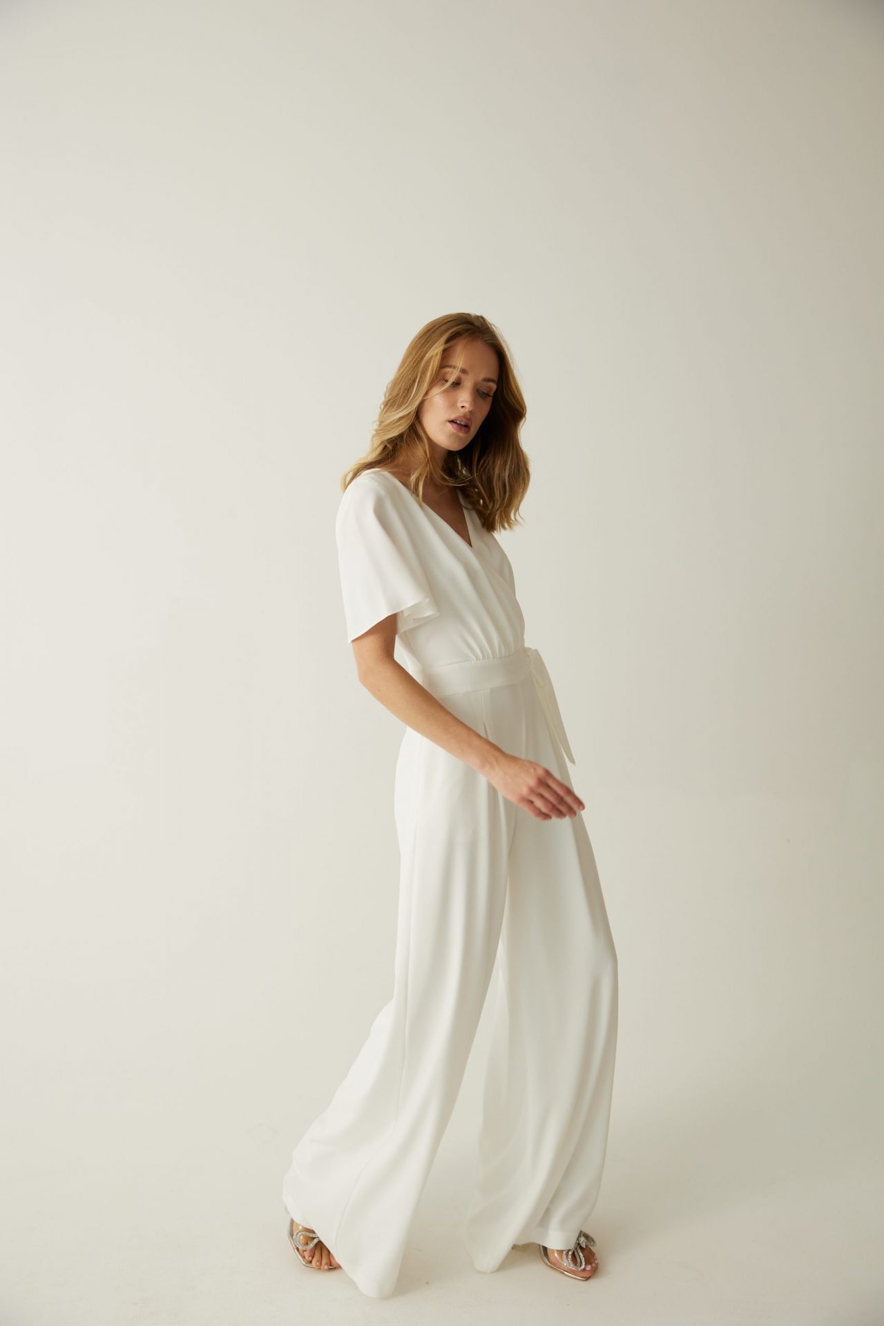 Jumpsuits stellen eine weitere stilvolle und moderne Option dar, die Komfort und Eleganz miteinander verbindet. Sie sind eine hervorragende Wahl für Bräute, die eine schlichte, aber dennoch raffinierte Alternative zum traditionellen Kleid suchen. Mit ihrer Vielfalt an Schnitten, von schlanken Silhouetten bis hin zu weiten Beinen, und der Möglichkeit, sie mit verschiedenen Accessoires zu kombinieren, bieten Jumpsuits eine moderne Interpretation der Brautmode, die sowohl für die standesamtliche Trauung als auch für die anschließende Feierlichkeit perfekt geeignet ist.
