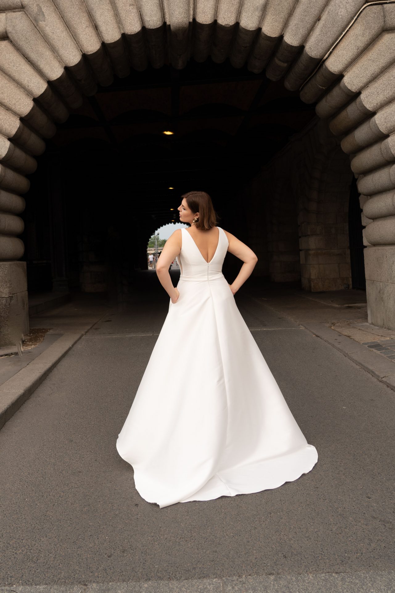 - Klassische Kirche: Die zeitlose A-Linie und der elegante Ausschnitt machen es zu einer sicheren Wahl für traditionelle Zeremonien.