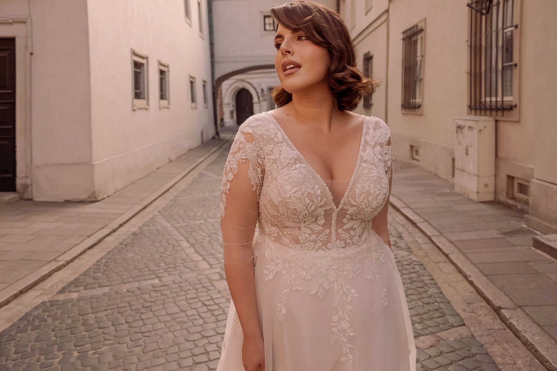 - Schleier: Ein Kathedralschleier mit Spitzenbesatz sorgt für Dramatik, ein Fingertip-Schleier für Eleganz.