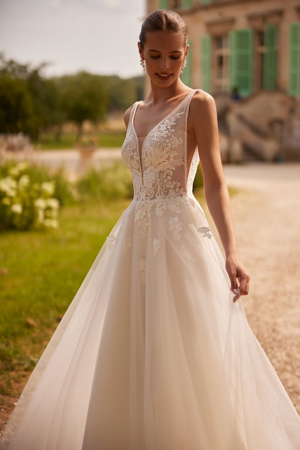 Du träumst von einem Brautkleid, das Deine Persönlichkeit strahlen lässt und gleichzeitig bequem ist? Dieses romantische Kleid mit A-Linien-Schnitt kombiniert feminine Eleganz, hochwertige Materialien und ein Design, das jedem Hochzeitsstil gerecht wird. Ob klassisch oder modern – mit diesem Kleid wirst Du Dich an Deinem großen Tag wunderschön und selbstbewusst fühlen.
