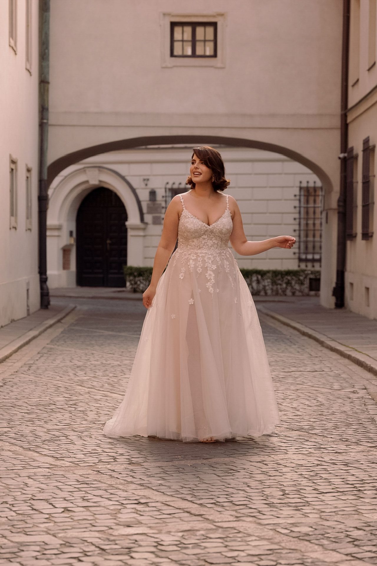 - Boho- und Vintage-Hochzeiten: Der fließende Tüll und die verspielten Applikationen fügen sich wunderbar in einen entspannten und dennoch eleganten Look ein.