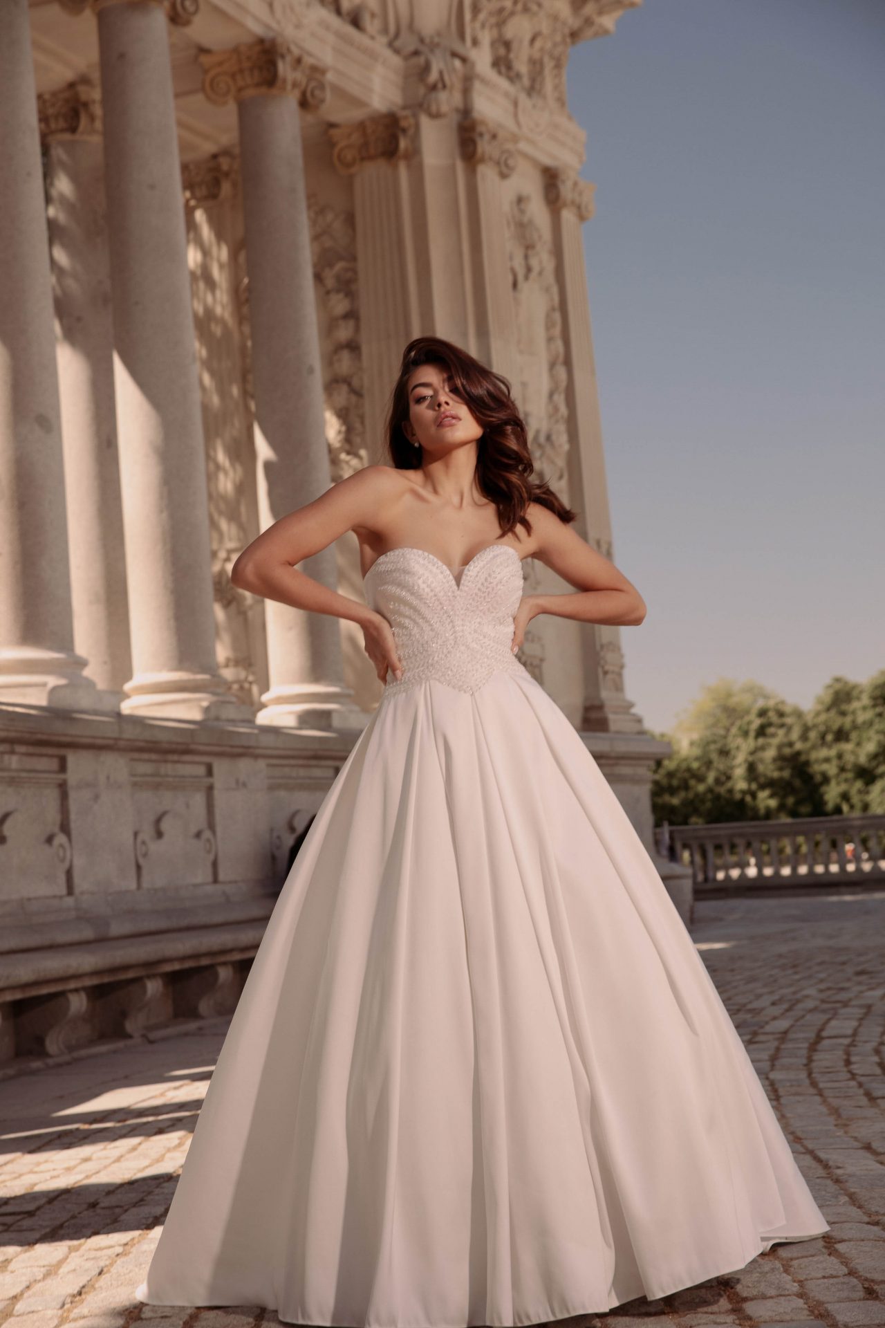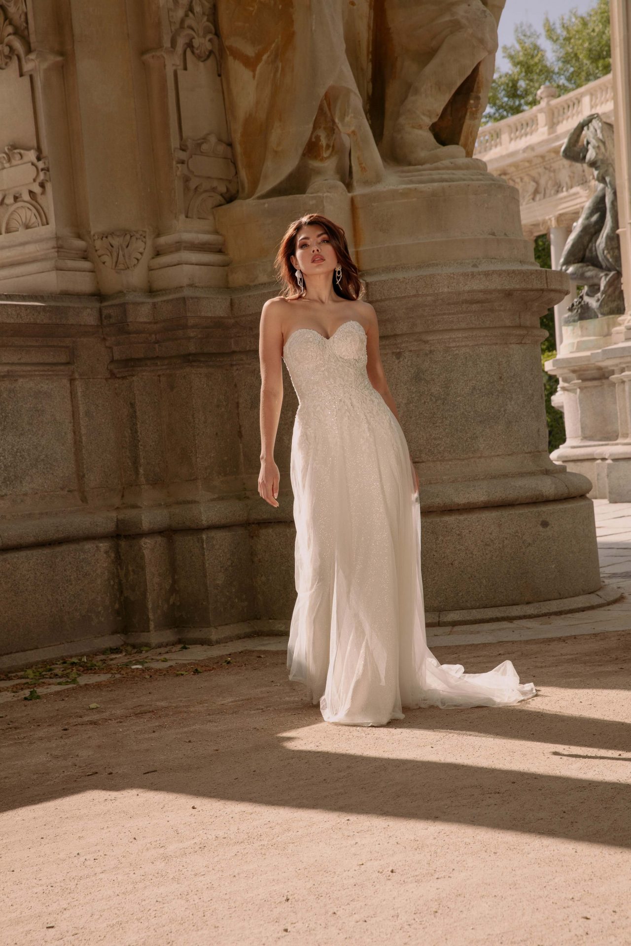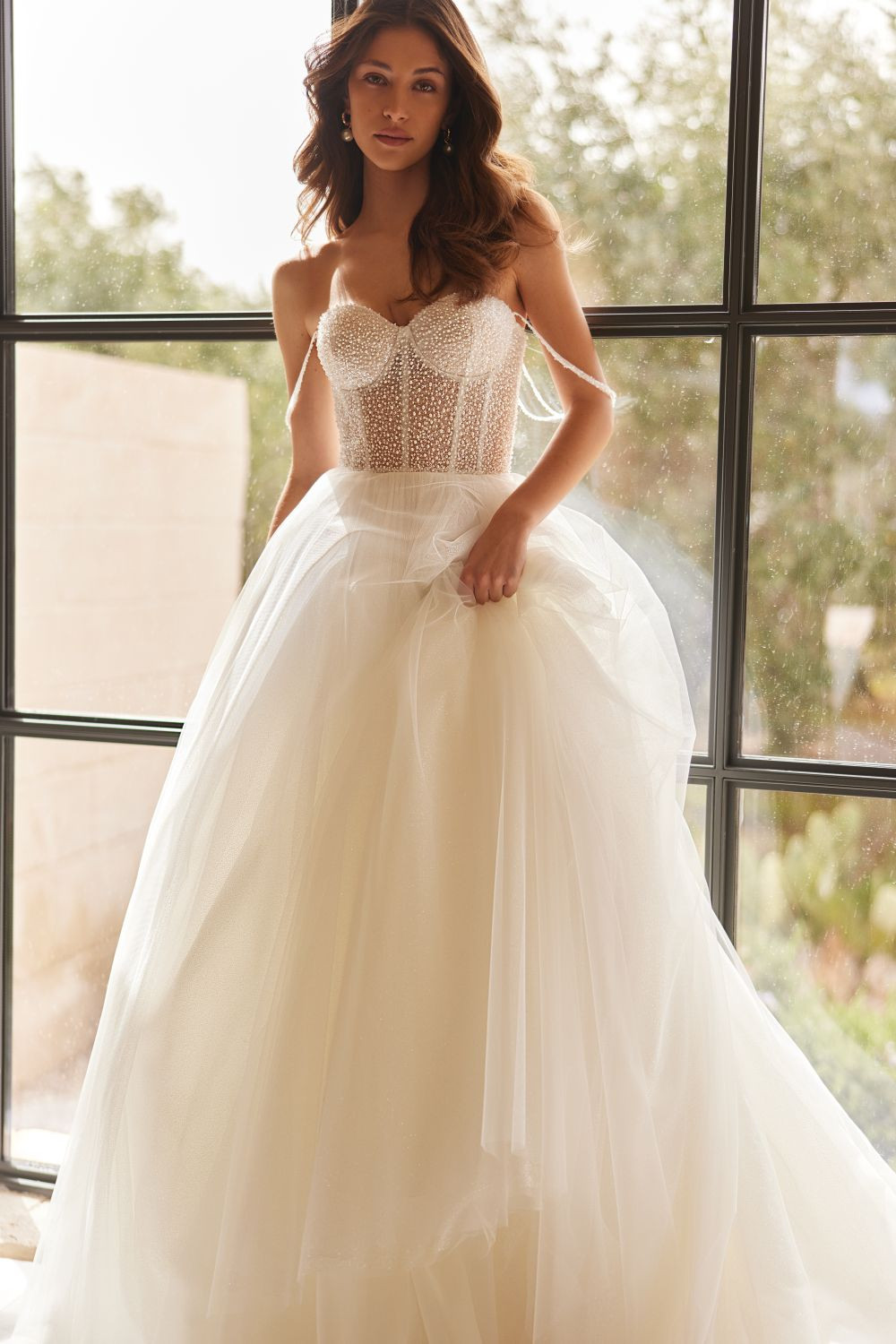 Der Prinzessinnen-Stil begeistert mit märchenhaftem Volumen und funkelnden Details, die Dich in ein echtes Hochzeitskleid-Highlight verwandeln. Ein eng anliegendes Oberteil trifft auf einen weit ausgestellten Rock aus Tüll oder Organza, der Dich wie eine Prinzessin erstrahlen lässt. Dieser beliebte Stil der Brautmode vereint Romantik, Glamour und zeitlose Eleganz.