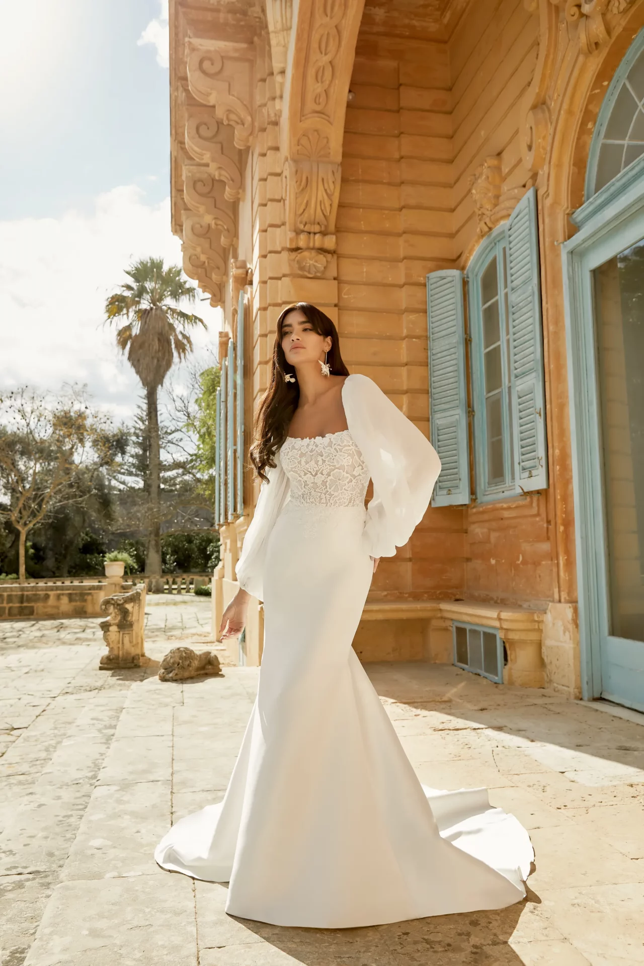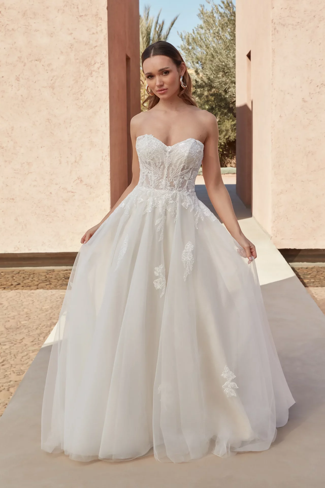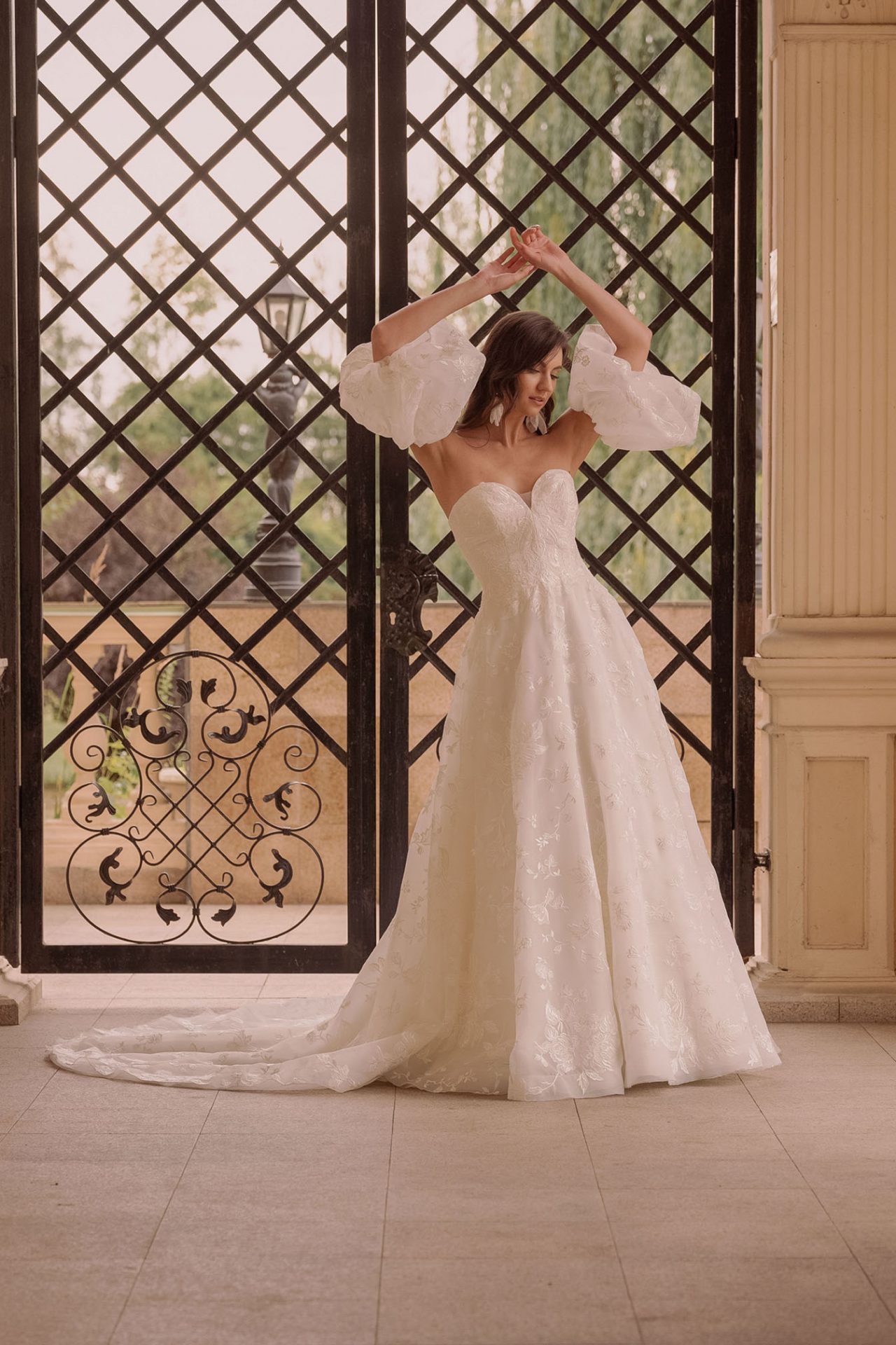 Der Prinzessinnen-Stil begeistert mit märchenhaftem Volumen und funkelnden Details, die Dich in ein echtes Hochzeitskleid-Highlight verwandeln. Ein eng anliegendes Oberteil trifft auf einen weit ausgestellten Rock aus Tüll oder Organza, der Dich wie eine Prinzessin erstrahlen lässt. Dieser beliebte Stil der Brautmode vereint Romantik, Glamour und zeitlose Eleganz.