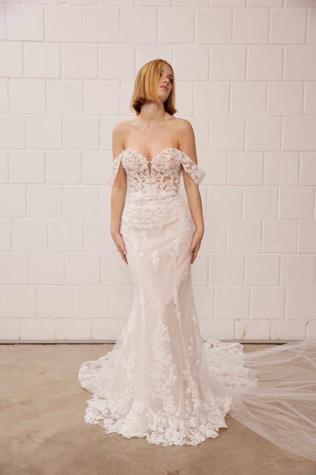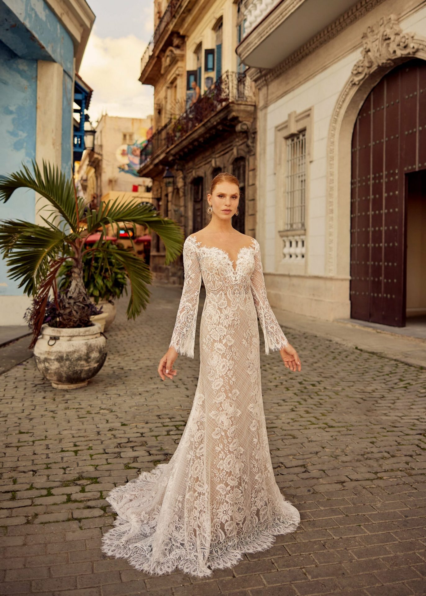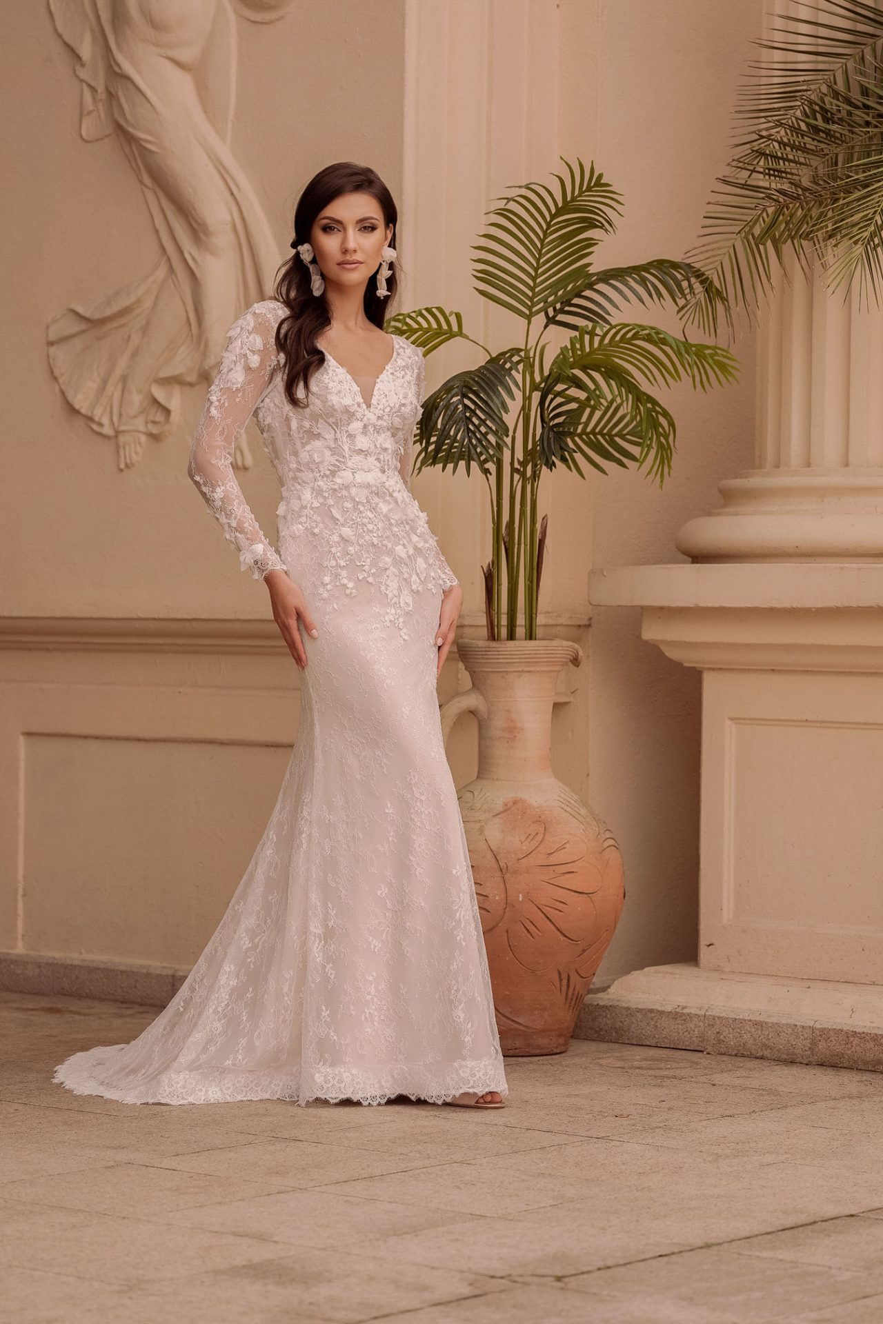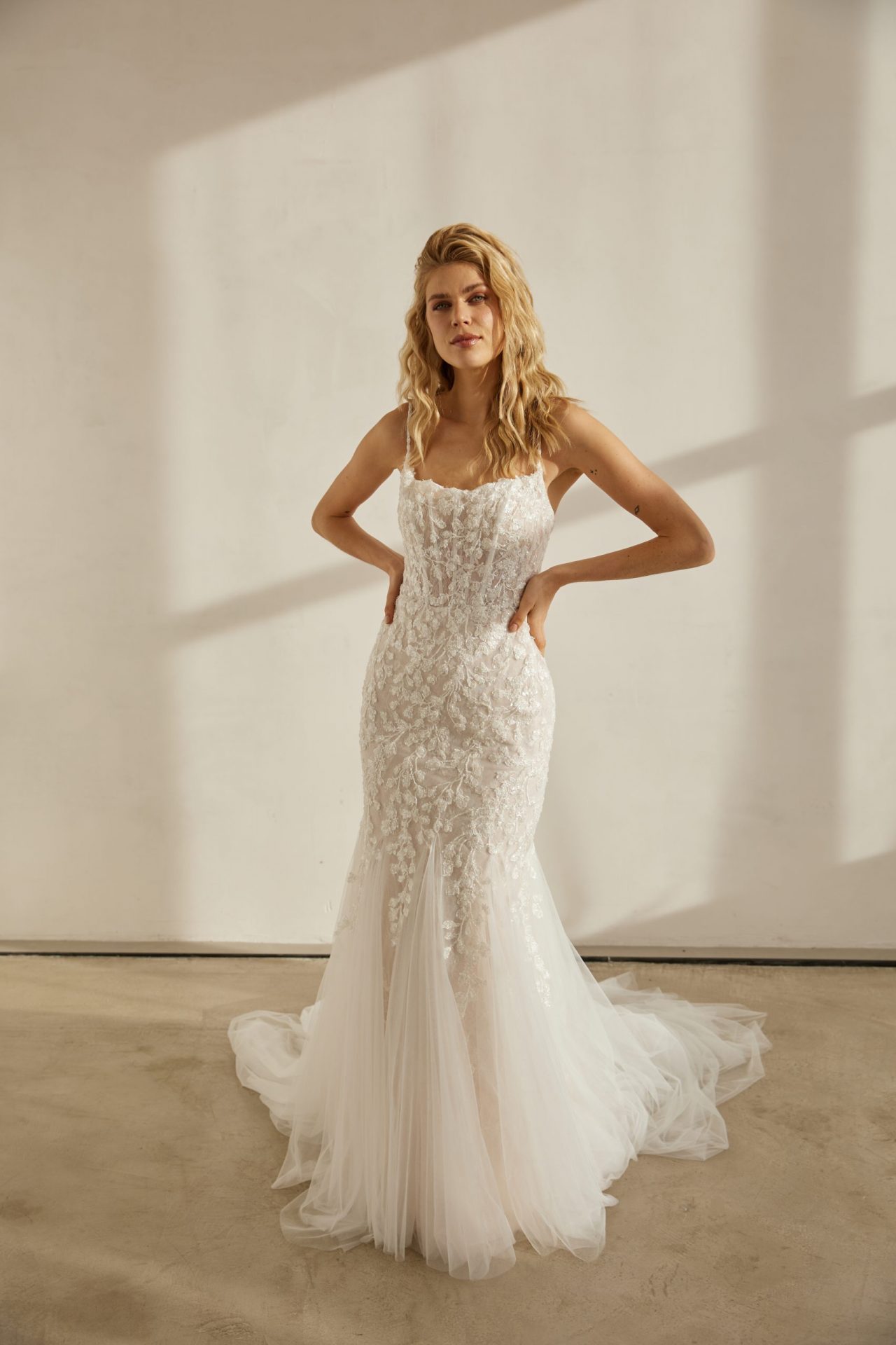 Setze auf einen atemberaubenden Auftritt mit einem Mermaid- oder Fit-and-Flare-Brautkleid, das Deine Kurven betont. Figurbetonte Schnitte gehen unterhalb des Knies in einen weiten Rock über und sorgen für eine glamouröse Brautmode-Optik. Ein solches Hochzeitskleid wirkt besonders edel mit tiefem Rückenausschnitt, feiner Spitze oder schimmernden Applikationen.